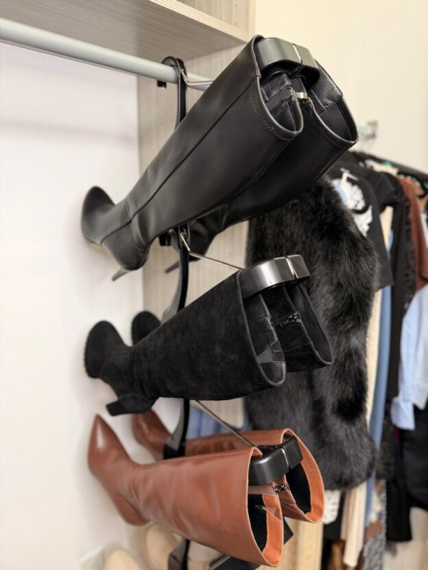 The boot rack is easy to assemble, requires no tools, and appreciate its quality and is effective in organizing footwear. It effectively maximizes closet space and keeps boots in excellent condition, while maintaining their shape and preventing damage.